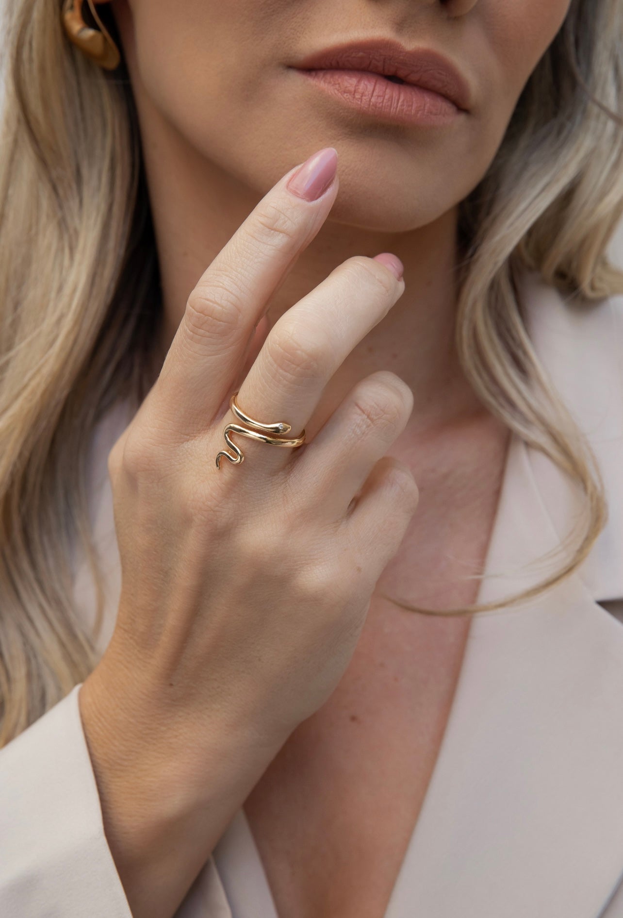 Embrace your inner temptress with our exquisite Snake Ring. Crafted with intricate details, this luxurious piece captures the sleek and alluring nature of the serpent. Add a touch of sensuality and sophistication to any outfit with this statement accessory.